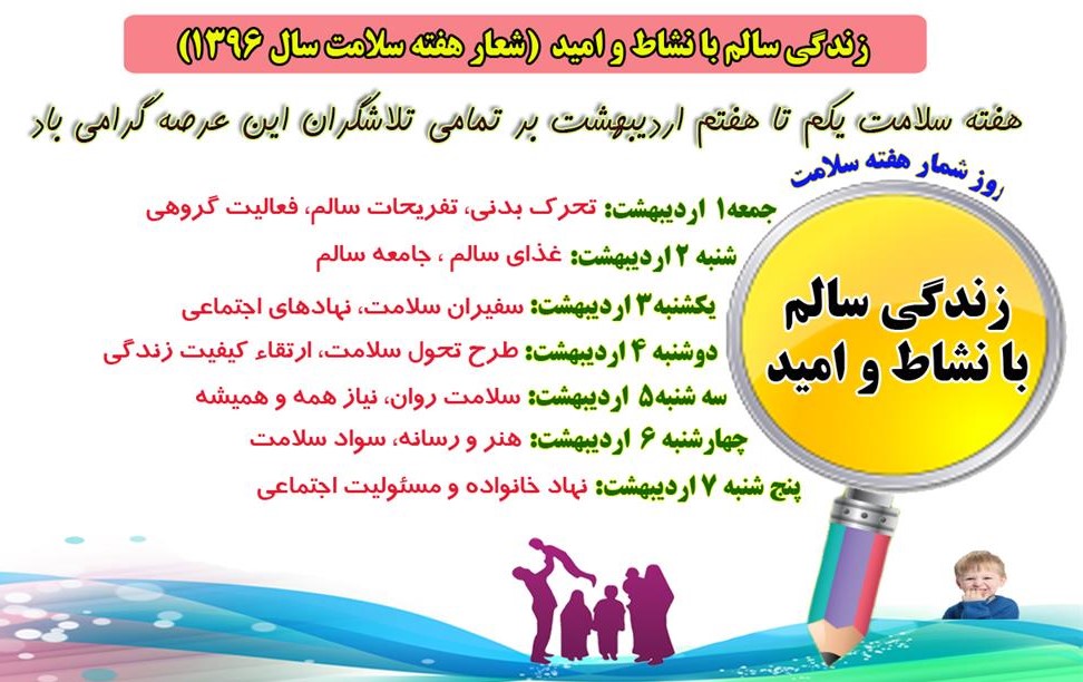 شعار هفته سلامت: «زندگی سالم با نشاط و امید »